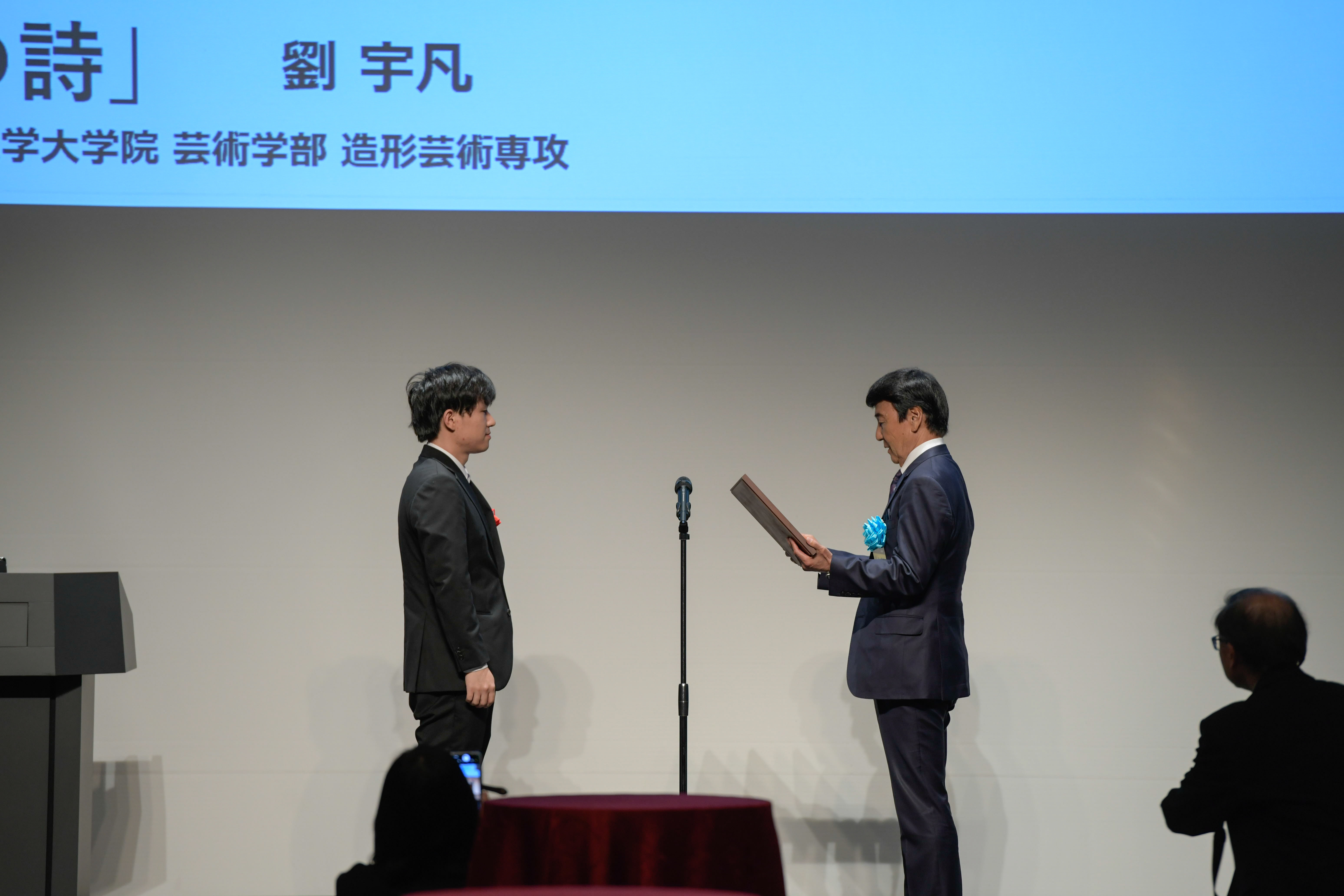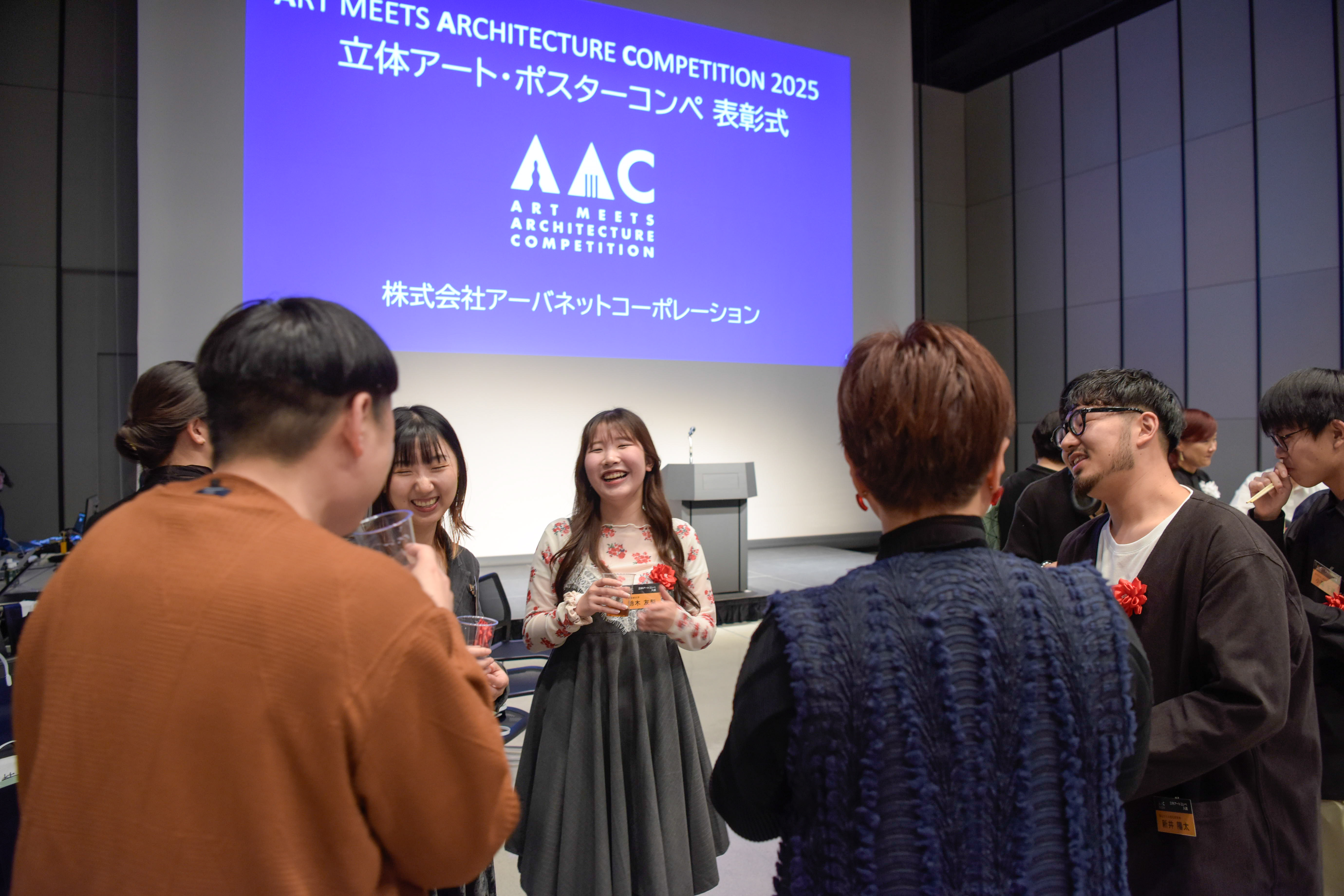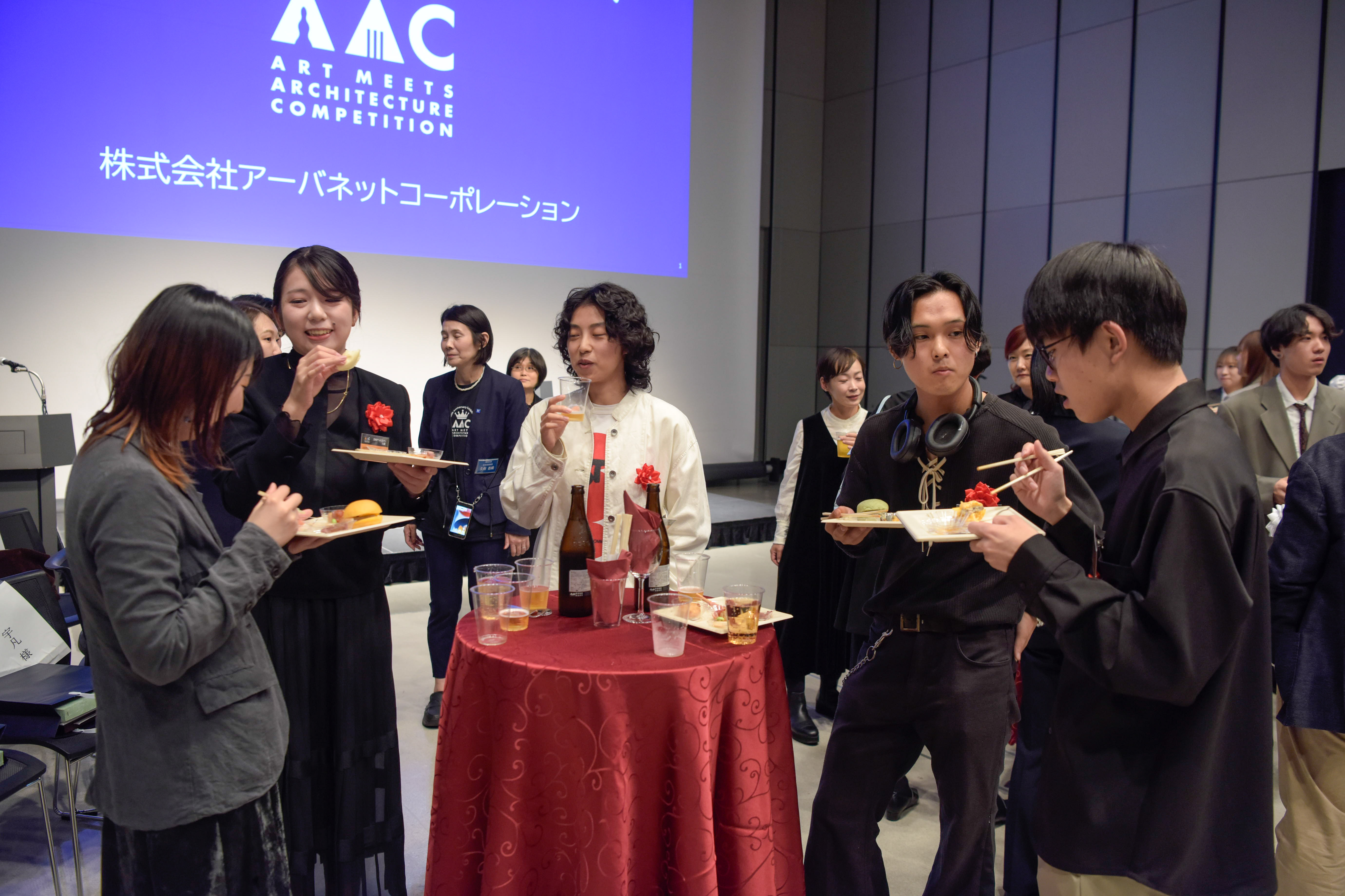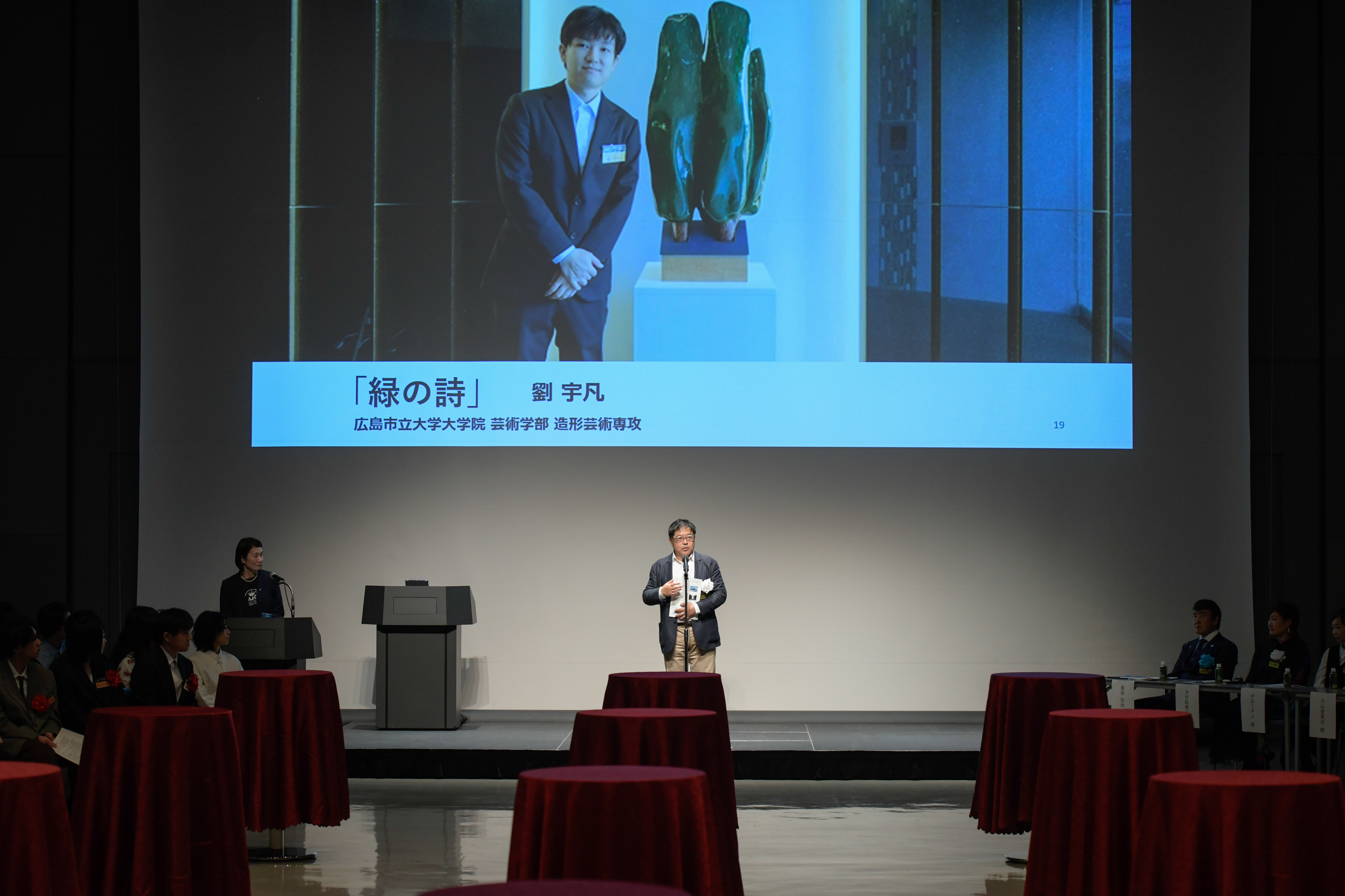 その中で今回の審査の決め手となったのは、作品と「空間と場との相性」です。最優秀賞の劉さんの作品は、家から3本の木が生えているイメージで、作者がご自身のパートナーや猫という「家族」を重ねていると聞き、このマンションに住まう多様な家族が家を作っていくイメージと重なりました。