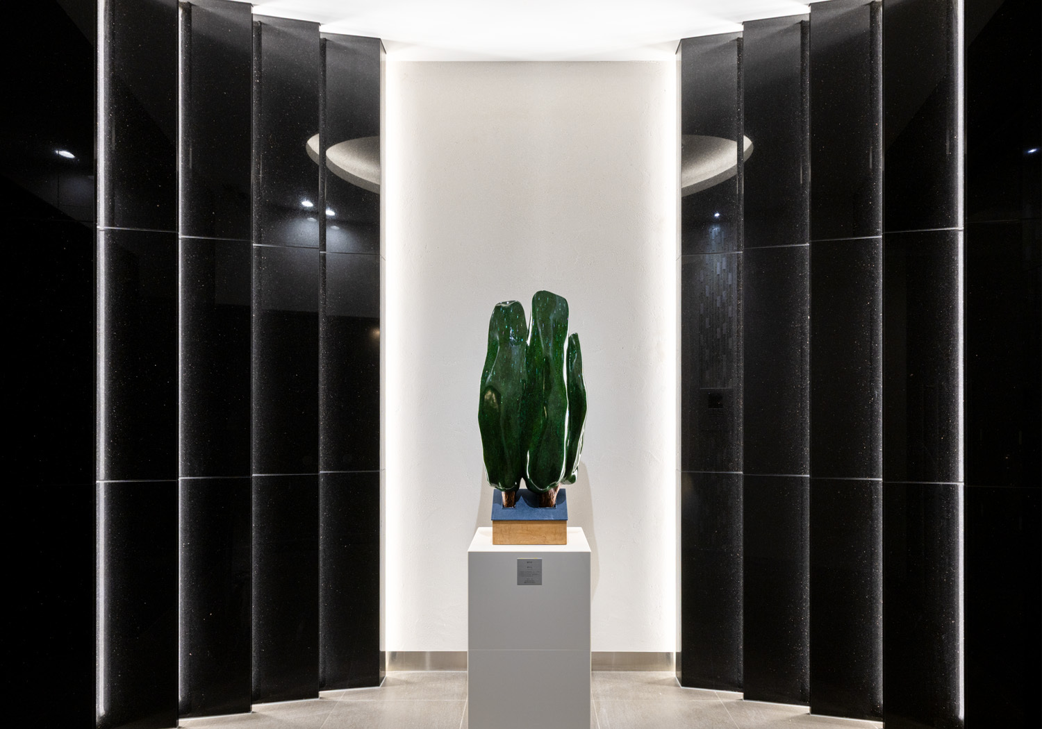 まず、最終審査に進まれた3名の作品はどれも非常にクオリティが高く、力のあるものでした。審査は作品の優劣を決めるものではなく、どの作品も毎日見ても飽きない、新鮮な気持ちにさせてくれるという点で審査員一同の意見が一致していました。 その中で今回の審査の決め手となったのは、作品と「空間と場との相性」です。最優秀賞の劉さんの作品は、家から3本の木が生えているイメージで、作者がご自身のパートナーや猫という「家族」を重ねていると聞き、このマンションに住まう多様な家族が家を作っていくイメージと重なりました。 また、設置場所はそれほど奥行きのある空間ではありませんが、劉さんの作品はレリーフに近く、比較的奥行きが浅く作られています。それでいて漆の滑らかな立体感や、光の当たり方でキラキラと光る螺鈿(貝殻)の表情があり、絵画とは異なります。時間に応じて表情を変えるこの作品が、住民が「ほっとできるような空間」に最もふさわしいと判断しました。